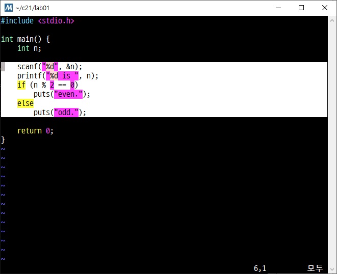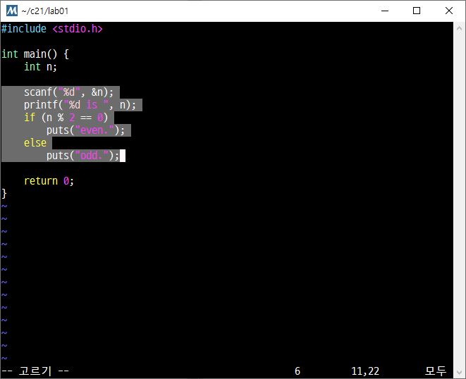 vim에서 그냥 마우스 끌기로 선택을 하면 다음과 같이 회색으로 선택되지만